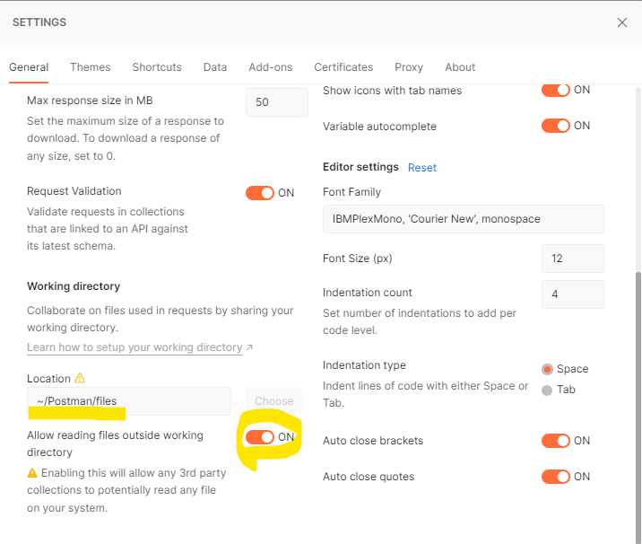 Make sure that Postman can read files inside the working directory.
