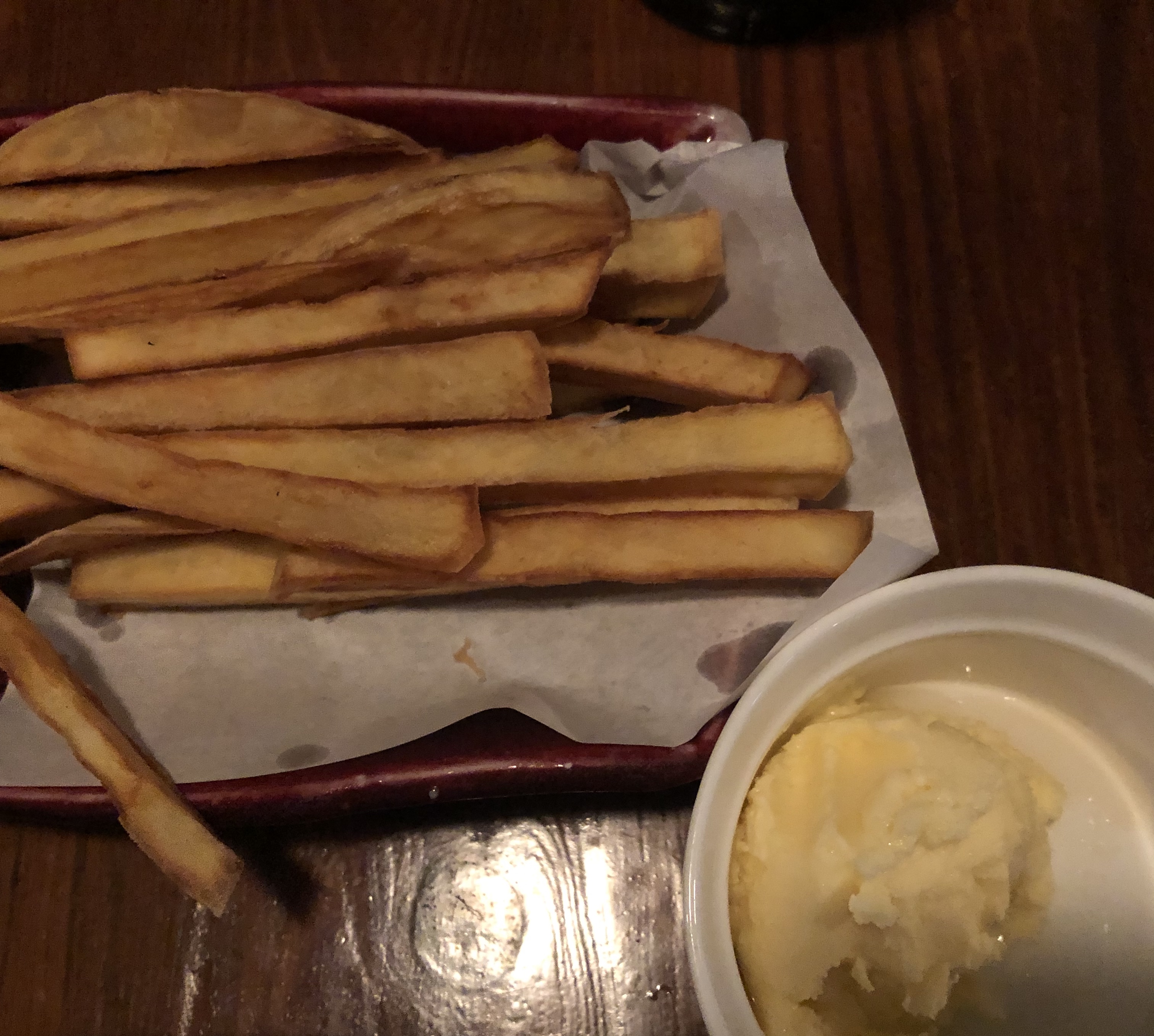 바삭하게 튀긴 감자튀김에 꽝꽝얼린 허니버터를 찍어먹는다.